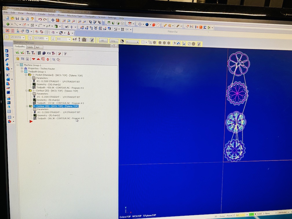 I again used two flowers (Harry Potter 7.2 and Toy Story 3) from my filmflowers project. Since the two actions we learned this week was to Contour (cut along path) and Pocket (cut within path), I tried to prepare the files accordingly in Illustrator.