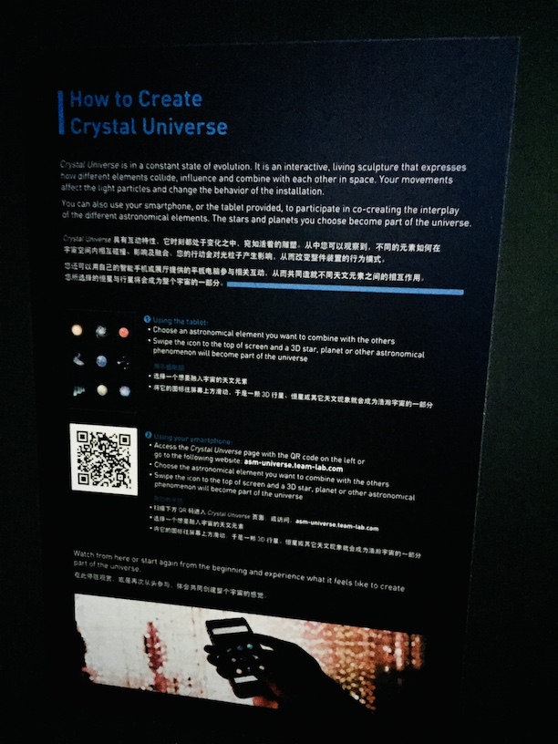 I first came across teamLab's Crystal Universe at the ArtScience Museum in Singapore, November 2016. I had only been working with the web at the time, and it was the first time I had seen anything like it and my mind was blown.