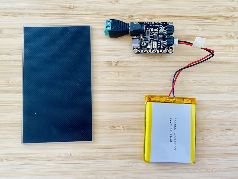 - Adafruit Universal USB / DC / Solar Lithium Ion/Polymer charger: Solar to LiPo charger ($14.95)