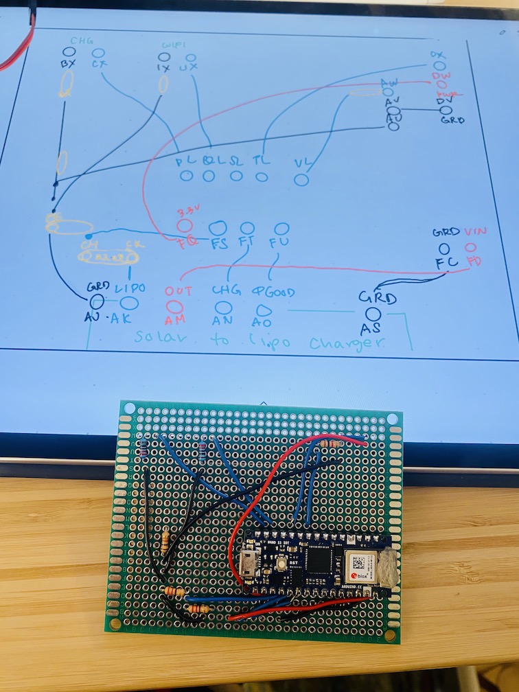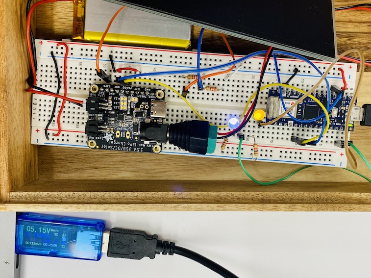 - What is my power draw for my microcontroller/circuit setup? How do I make sure that my LiPo battery is never fully charged (or else I can't detect when the solar panel is charging it), but also never fully drained?
