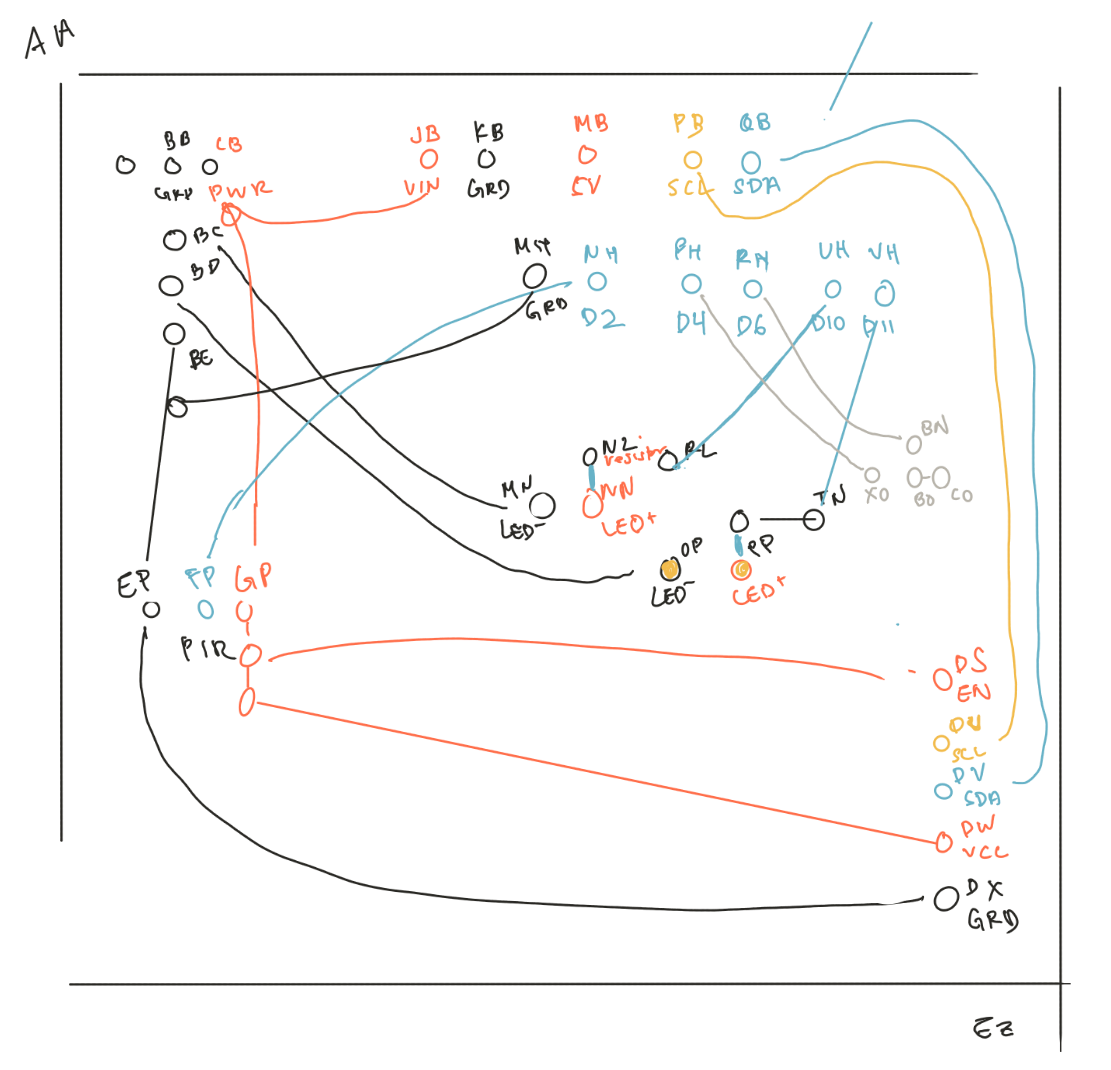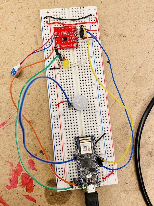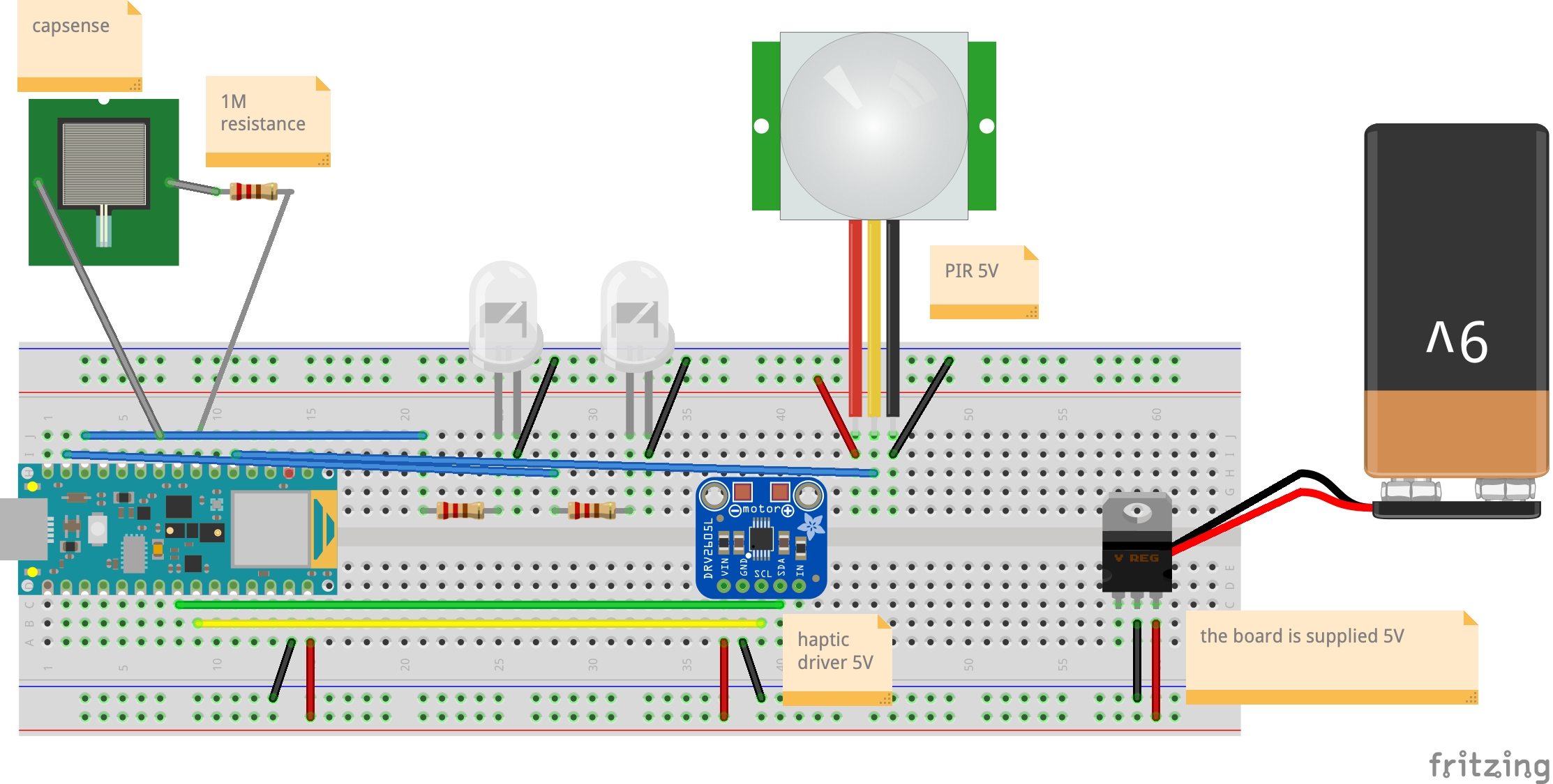 And here is the final wiring with the vibration motor and PIR sensor swapped in: