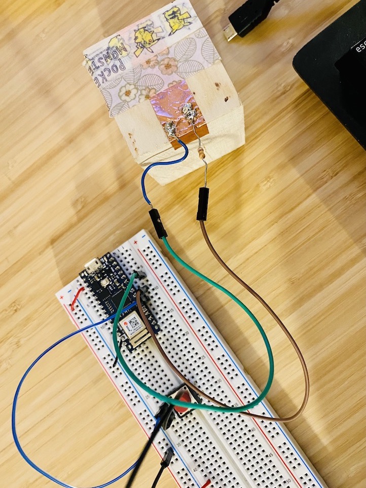 To make our coding easier, we started with a pushbutton and a capacitive sensor (from my Homemade Hardware homework haha) and logged to Serial to see if we were entering the correct modes with the correct probabilities:
