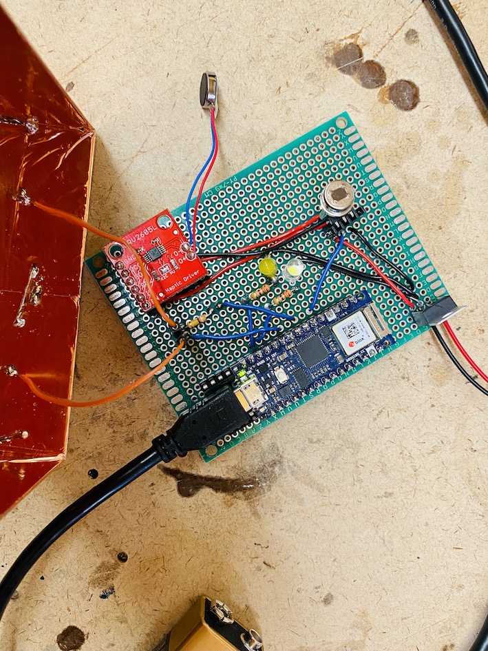 A note: the haptic motor driver (DRV2605) I borrowed from Tom is from Sparkfun, which has an extra pin that the Adafruit version doesn't have. So make sure to follow the Sparkfun wiring guide instead of Adafruit's, even though we're using Adafruit's library.